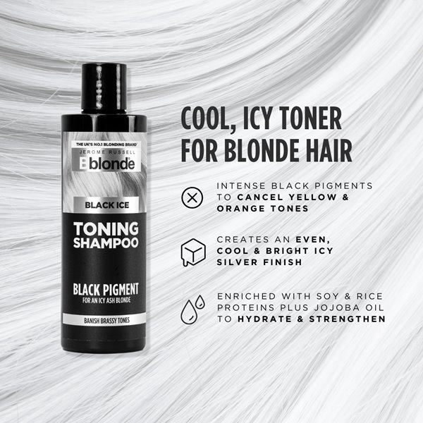 Black Ice Toning Shampoo is your go-to solution for achieving a flawless icy blonde finish at home. This sulphate-free shampoo features intense black pigments that effectively banish brassiness, neutralising yellow and orange tones for an even, cool silver-blonde result. Unlike traditional purple shampoos, Black Ice offers precise toning without staining skin or nails. Enriched with nourishing Soy and Rice Proteins and Jojoba Oil, it hydrates and strengthens hair while maintaining moisture and softness. Perfect for light blonde or porous hair.