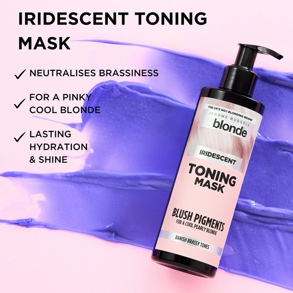 Bblonde® Iridescent Toning Mask contains pigments that provide a soft, pearly result; for more porous hair, the result may appear more intense.