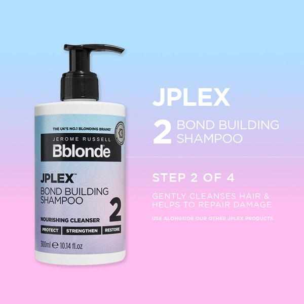 JPLEX Bond Building Shampoo gently cleanses the hair whilst helping to repair damage. Step 2 of 4 in our JPLEX range, the bond building technology helps to reinforce the hair’s natural structure repairing damage from the core.