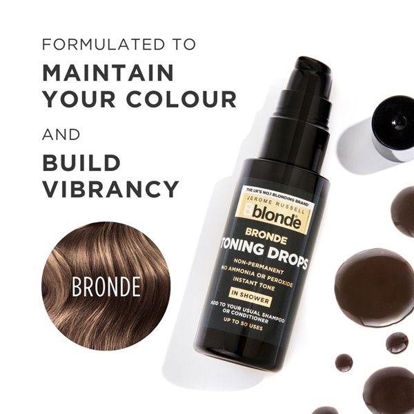 Maintain your desired shade of Bronde as part of your normal hair care routine. Toning Drops will neutralise yellow and brassy tones instantly and can be applied as and when you require. No bowl is required, just mix the Toning Drops in your hand into your normal shampoo or conditioner and apply to your hair as you would a shampoo or conditioner.