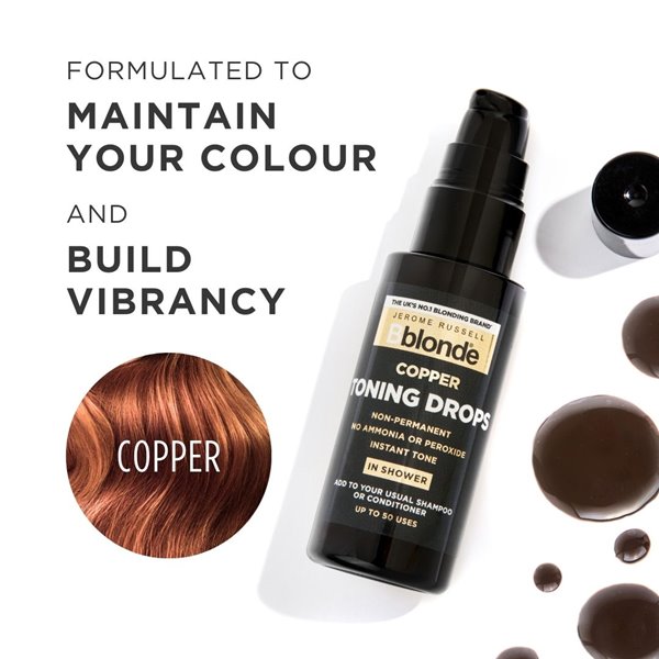 Maintain your desired shade of copper as part of your normal hair care routine. Toning Drops will neutralise yellow and brassy tones instantly and can be applied as and when you require. No bowl is required, just mix the Toning Drops in your hand into your normal shampoo or conditioner and apply to your hair as you would a shampoo or conditioner.