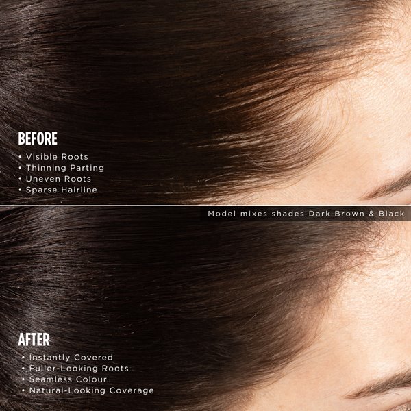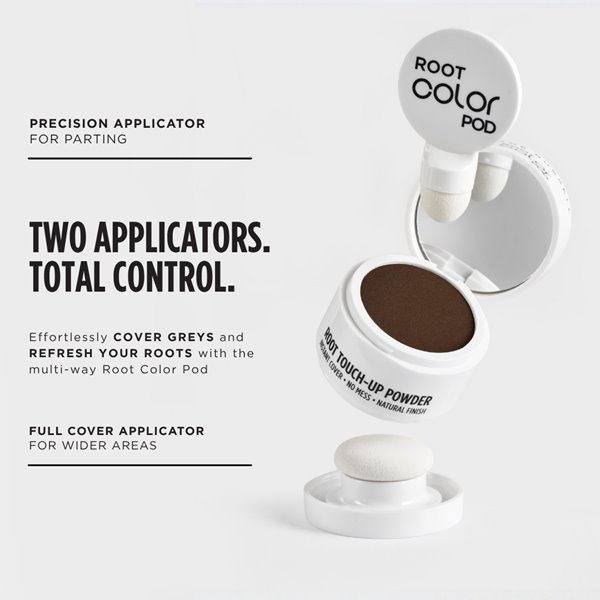 Instantly cover root regrowth and thinning hairlines with this ultra-fine root color powder. The no-mess formula stays pit with no smudging and is enriched with quality ingredients to nourish the scalp while enhancing coverage. Perfect for sensitive skin and available in six natural, seamlessly blending shades. The fine powder technology adds depth and dimension to refresh roots, cover greys, and create fuller-looking hair in seconds - helping extend time between coloring sessions.
