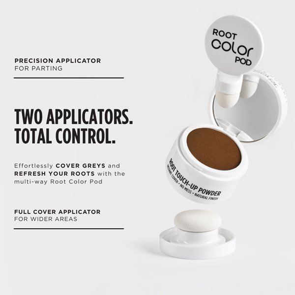 Instantly cover root regrowth and thinning hairlines with this ultra-fine root color powder. The no-mess formula stays put with no smudging and is enriched with quality ingredients to nourish the scalp while enhancing coverage. Perfect for sensitive skin and available in six naturla, seamlessly blending shades. The fine powder technology adds depth and dimension to refresh roots, cover greys and create fuller-looking hair in seconds - helping extend time between coloring sessions.